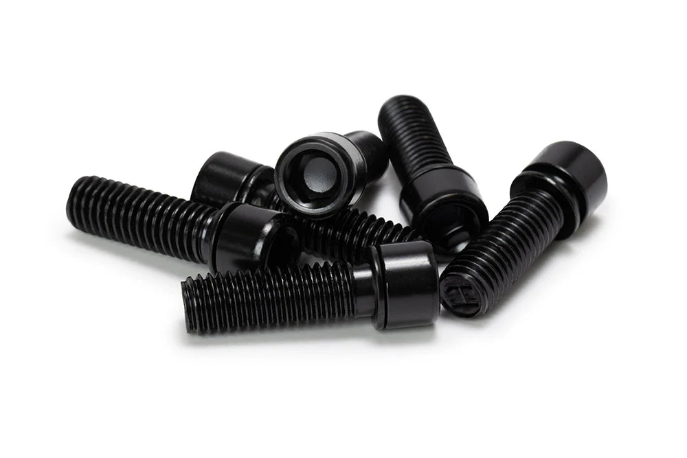 Tornillos de repuesto para potencia sólida. Compatibles con la mayoría de las potencias de BMX actuales. Se venden en paquetes de 6.